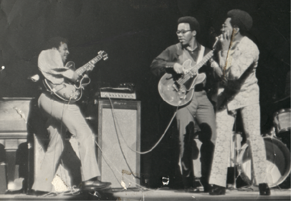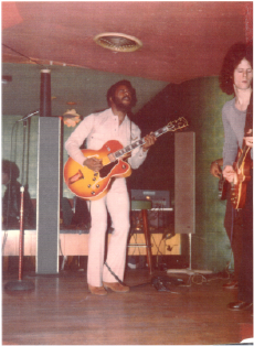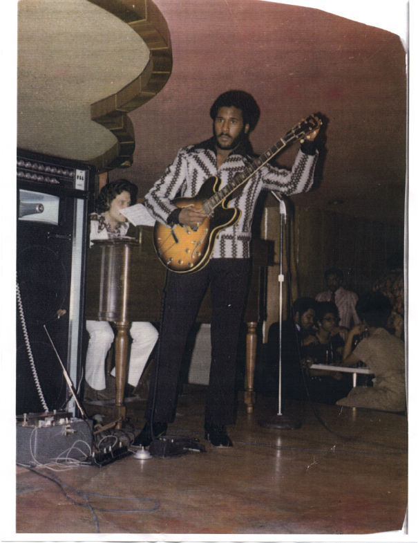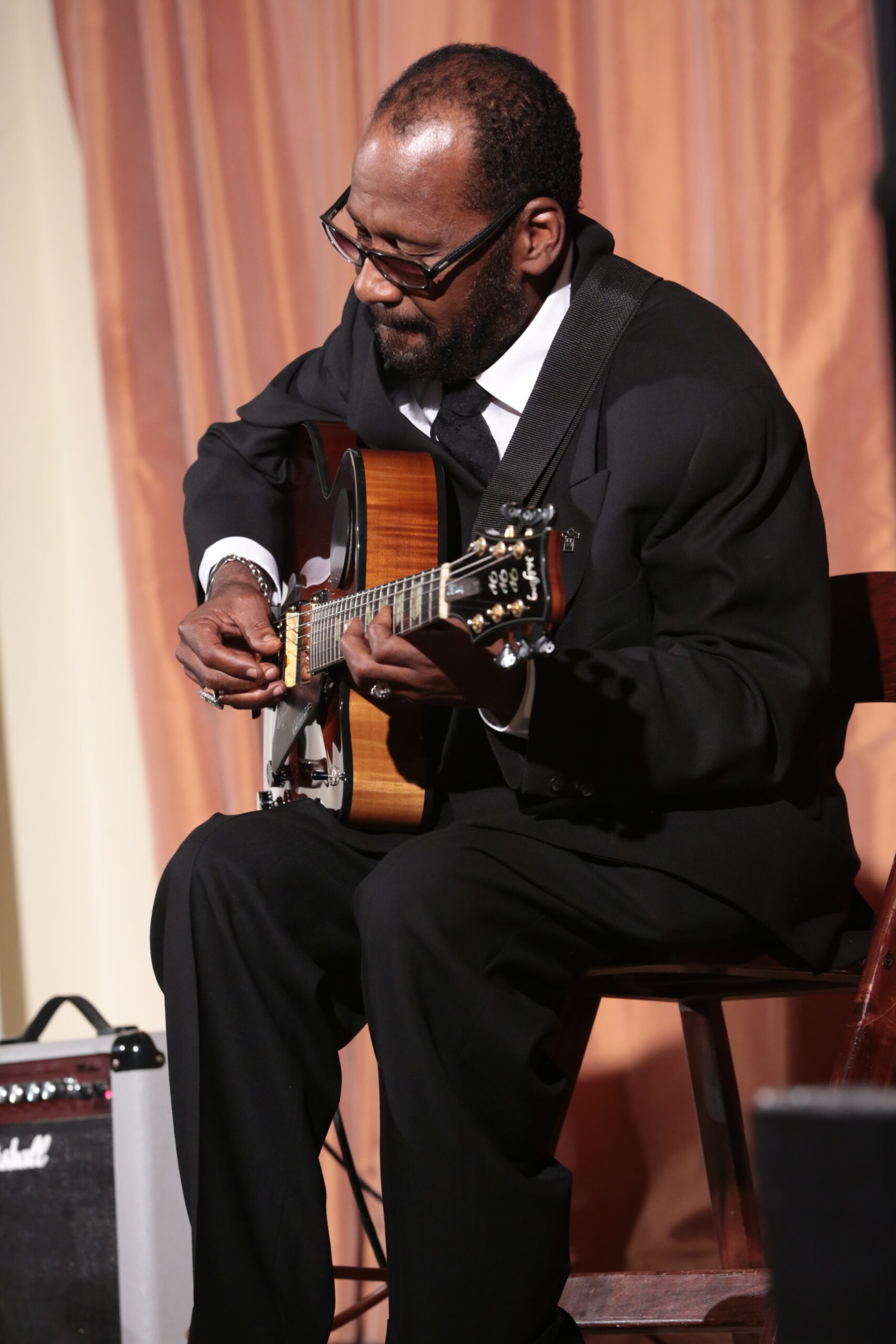 I remember one day we went up to this music store because my Mother had to have a head put on her tambourine for church. When we would go to the store I would always look at the guitars. I thought maybe one day I could get a guitar. I asked the guy, “do you have any used guitars?” He said, “You know it just so happens we do have a guitar that just came in.” I asked how much it was and he said it was fifteen dollars. I begged my mother to buy it. I think we gave him $7 down on the guitar. It was an acoustic guitar with one of those brown rag cases. Two doors down on the other side of my house, there was a guy who played gospel and he played guitar. In the summertime you could hear him on the street and I used to mimic what I was hearing. My older brother began playing as well. I started taking my guitar to church. Nobody could hear me because it was acoustic.